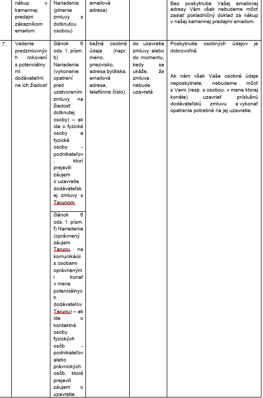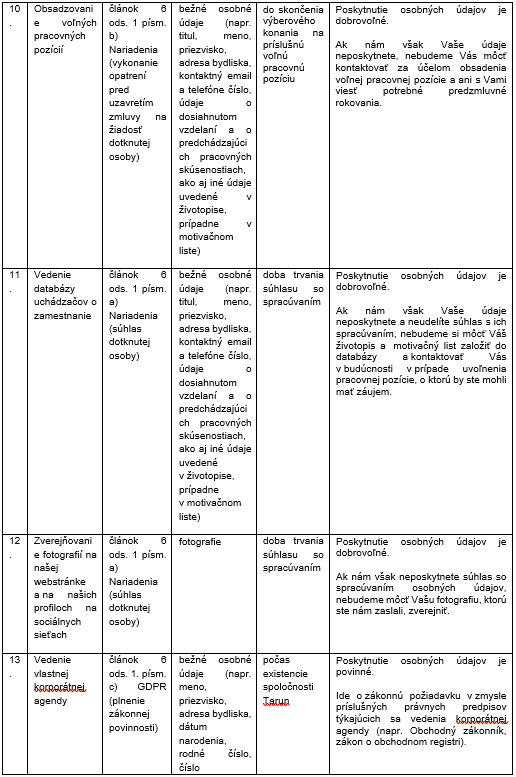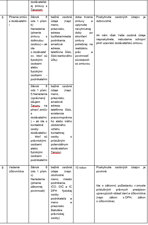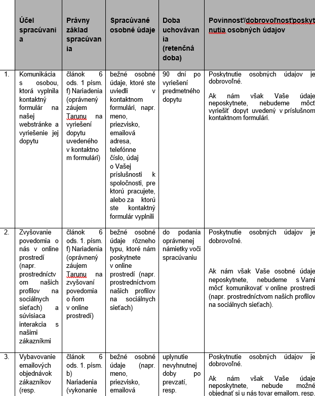 Informácie o ochrane osobných údajov – TARUN, s. r. o.